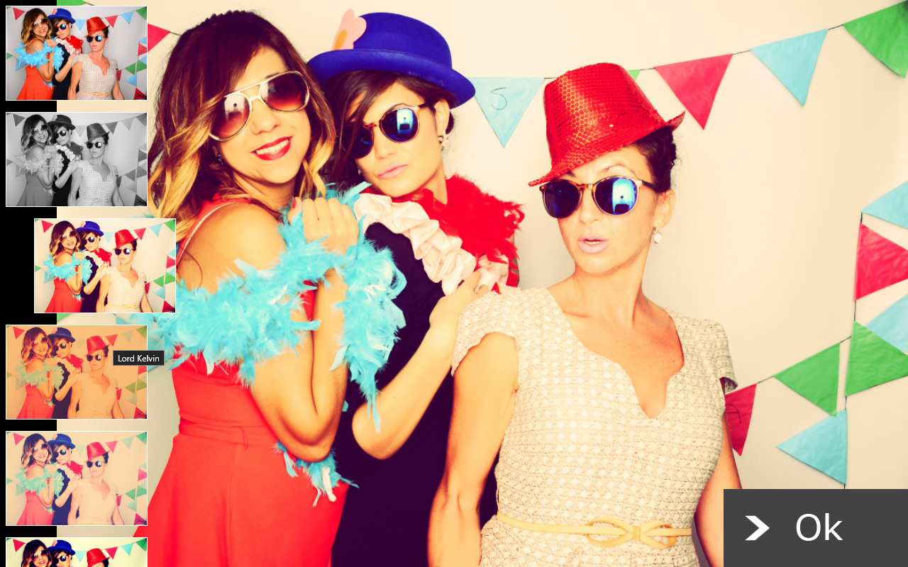 – Al terminar cada pase se puede elegir un efecto. – También se pueden compartir por correo o en facebook en ese momento. – El fondo base es de 2×2 metros de lona blanca y vosotros, o l@s amig@s, podÈis adornar para personalizarlo. – O bien puedes traer un fondo impreso. – Durante el viaje de novios recibiréis en tu correo un vínculo web con acceso a las fotos y con pase automático y posibilidad de compartir.